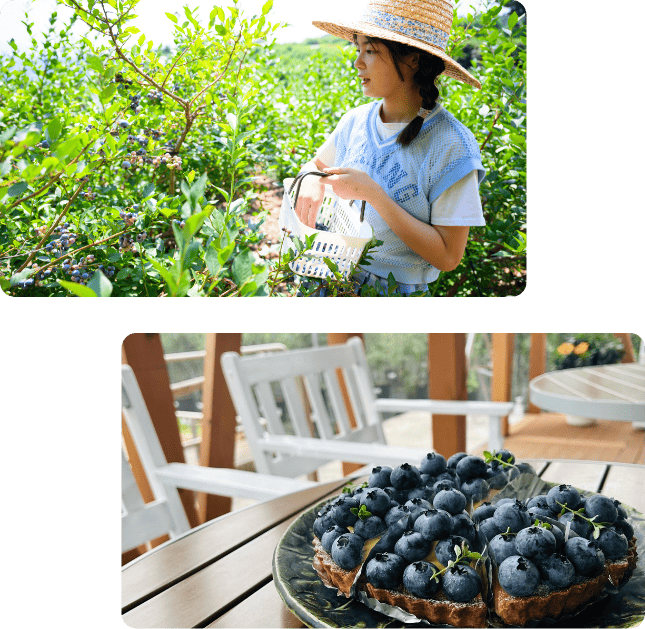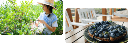 健康的でイキイキとした50種類1000本以上ものブルーベリーの樹と、工夫と遊び心の詰まった農園、心を込めたおもてなしで皆様をお出迎え致します。